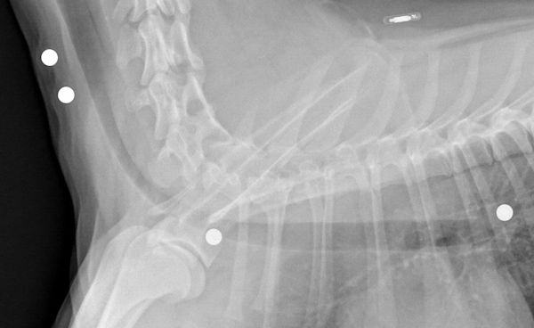 Darjeeling, or Darj as she's known, came to live with us to bridge the gap between our big, working shepherds and our tiny, pampered Pomeranian Dragon. We had hopes she, and by extension Dragon, would interact somewhat with the big dogs. We had no idea that she would be such a beautiful force in our home. We are truly blessed to have her sharing our lives. Darj was found running wild on the streets of Bakersfield. Thankfully, she's a good girl and the wonderful people from A Safe Fur Place rescue were able to coax her off the streets. She was spayed, microchipped, lots and lots of crud was washed & brushed off her and she was ready to find her forever home. Little did anyone know, she carried some pretty severe scars hidden within her. On her first vet visit after we picked her up, we found buckshot lodged in her chest and along her left side (our vets are amazing PLUS they know we're somewhat obsessive about our animals so it was a REALLY thorough initial exam). Having found that, we feel extra lucky to be able to share our lives with this amazing little creature. We've added the x-ray below, in case anyone's interested. We expect to have lots and lots of Darj photos in the coming year - hopefully even photos of her with Nellie &/or Ruby puppies.